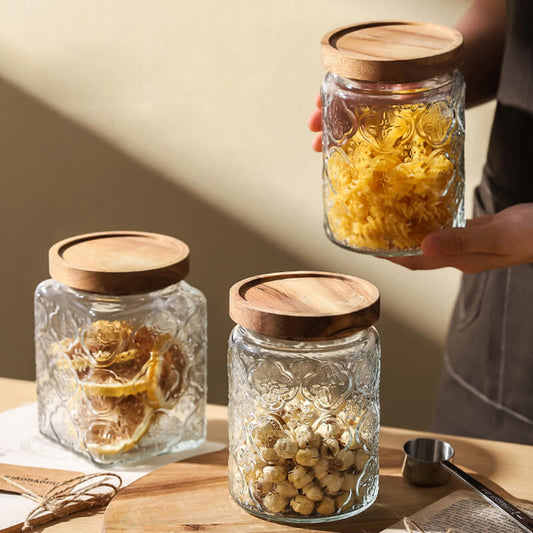 Begonia Embossed Glass Storage Jar